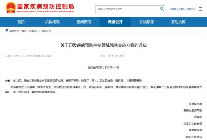 近日,国家疾控局、国家卫生健康委等六部门联合印发《疾病预防控...